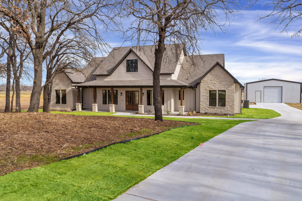 Modern farmhouse on 1.16 acres in Tolar, TX with 4 beds, 3 baths, 2,400 sq ft and a 30×40 shop. Explore 2207 Rattler Way by True Texas Builders.